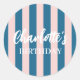 Colourful SImple Nautical Blue Minimalist Stripes Classic Round Sticker
