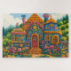 Colourful jigsaw puzzle featuring a whimsical illustrated house surrounded by lush flowers and greenery. Rich in detail and vibrant colours, this design creates a warm, dreamy atmosphere that makes puzzle-solving both relaxing and visually rewarding.