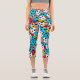 The capri leggings feature bright geometric halloween skulls in a seamless pattern.
