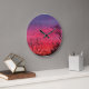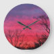 Colourful sunrise sky on a round clock.