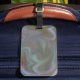 A luggage tag covered in a bright, clearly visible colourful smudge.