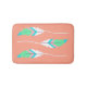 Pretty coral coloured bath mat with three large white, turquoise, pink, green and white feathers. Matching bath decor is available. Comes in three sizes.