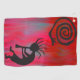 Colourful Southwestern Kokopelli Golf Towel. Snake spiral symbol rock drawing. Southwestern Abstract Cave Petroglyphs multi-colours red and a black background Kokopelli. Kokopelli is a fertility deity, a humpbacked flute player, win Native American cultures. Attributed to ancient aliens or tribal art and inspired by cave and rock drawings. Customise your Kokopelli and snake spiral cave drawing ancient artists colours and style to suit your taste.. Great gift idea for those that ponder the ancient mysteries of the planet. Inspired by rock, wall and petroglyph ancient artists.