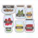 Colourful spice jars with various spices like tumeric, paprika, bay leaves and basil against a colourful background. Perfect for a home cook or budding chef or for kitchen decoration ideas.