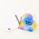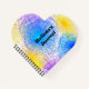 Fun spiral lined heart notebooks with cool spiral circles in blue, purple and yellow on a white background. Shown with sample text, Name, Journel. Personalise it with your name and class subject, or other text. Or, delete text box fields to show only image. Fun for school, doodles, or business. Original Graphic Artwork design by TamiraZDesigns. Visit my store for more unique items at: www.zazzle.com/tamirazdesigns