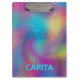 This custom clipboard features a textured colourful splash background. Personalise this product by adding your name to the bottom of the board.