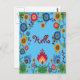 Colourful Spring Flowers Post Card 'Hello' Blue