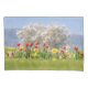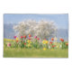 Cheerful coloured flowers with red and pink tulips, yellow flowering wild daffodil against white tree blossoms on a sunny bright day in spring with blue sky. A beautifull landscape photo taken by Katho Menden. This pillow case is an enchanting gift idea for nature lovers.