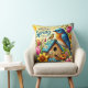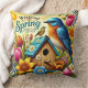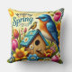 Colourful Spring Scene with Birds, Birdhouse Cushion