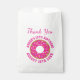 Colourful sprinkled doughnut Birthday party favour bags. Fun template with pink doughnut drawing. Cheerful design for children's celebration.