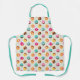 Cute, stylish apron featuring a pattern of colourful doughnuts with sprinkles against a light beige background and turquoise strap. Perfect for doughnut lovers and bakers!