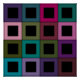 This bold repeating pattern features a grid of colourful squares with black centres, arranged in a seamless chequerboard layout. Each square is framed in jewel-toned hues including teal, magenta, olive, plum, violet, and dusty pink, creating a rich and varied palette. The alternating shades lend the design a rhythmic energy, while the stark black interiors add dramatic contrast. With its structured geometry and striking colour combinations, this pattern blends retro flair with modern minimalism for a dynamic, eye-catching effect.