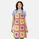Colourful Square Geometric Pattern Apron designed by Nisha Prabhu. This colourful square geometric pattern apron is a stylish and practical accessory for your kitchen or any other cooking and baking activities. The apron features a captivating design with multiple squares in various sizes and colours arranged in a geometric pattern. The bold and beautiful colours, including shades of pink, orange and white, add a playful and modern touch to your cooking attire. The geometric pattern adds a contemporary and artistic flair, making your apron visually appealing and exciting. Whether you're cooking a family meal, hosting a dinner party, or simply enjoying some baking time, this colourful square geometric pattern apron is the perfect choice. It instantly adds a pop of colour and style to your kitchen attire, making you look fashionable and put-together while you work. With its beautiful colours and geometric pattern, this apron is versatile and suitable for various kitchen styles and themes. It works well in both modern and eclectic kitchens, adding a touch of visual interest and personality to your cooking space.