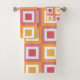 Colourful Square Geometric Pattern Bath Towel Set designed by Nisha Prabhu. This colourful square geometric pattern bath towel set is a stylish and beautiful addition to your bathroom decor. The towel set features a captivating design with multiple squares in various sizes and colours arranged in a geometric pattern. The bold and eye-catching colours, including shades of pink, orange and white, add a playful and modern touch to your bathroom. The geometric pattern adds a contemporary and artistic flair, making your bathroom look visually appealing and exciting. Whether you're looking to update your bathroom decor or add a pop of colour to your space, this colourful square geometric pattern bath towel set is the perfect choice. It instantly adds a touch of style and personality to your bathroom, creating a beautiful and inviting atmosphere. With their beautiful colours and geometric pattern, these towels are versatile and suitable for various bathroom styles and themes. They work well in both modern and eclectic bathrooms, adding a touch of visual interest and sophistication. Elevate your bathroom decor with this colourful square geometric pattern bath towel set. It is sure to impress your guests and make your bathroom a stylish and comfortable retreat. The modern design and beautiful colours will make your bathroom stand out and create a cheerful ambiance.