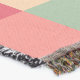 A pattern made up of squares of five different colours which have been arranged in 4x4 tiles. However the 4x4 tiles on the right are reversed and inverted creating a more interesting overall design. This design is created from a full sized vector graphic specifically for this type of blanket. The colour squares at the edges are therefore fully extended into the bleed area ensuring there can be no unwanted pattern edges in the final product.