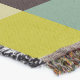 A pattern made up of squares of five different colours which have been arranged in 4x4 tiles. However the 4x4 tiles on the right are reversed and inverted creating a more interesting overall design. This design is created from a full sized vector graphic specifically for this type of blanket. The colour squares at the edges are therefore fully extended into the bleed area ensuring there can be no unwanted pattern edges in the final product.