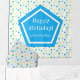 Boy birthday with blue, yellow and green stars. Customisable for any age. Photo template via Pixabay licensed under CC0 and must be replaced with your own photo