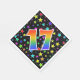 This exciting, fun, and vibrant paper napkin design features numerous colourful star shapes, along with the number "17" featuring a multicolored rainbow inspired spectrum gradient pattern, on a black coloured background. Paper napkins like this might be fun to use at a party being held to celebrate somebody’s seventeenth birthday, or perhaps a couple’s seventeenth wedding anniversary, or some other 17th event. [~Z0000346]