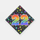 This exciting, fun, and vibrant paper napkin design features a colourful pattern of star shapes, along with the number "22" featuring a multicolored rainbow spectrum like gradient pattern, on a black coloured background. Paper napkins like this might be fun to use at a party in honour of somebody’s twenty second birthday, or perhaps a couple’s twenty second wedding anniversary, or some other 22nd event. [~Z0000346]
