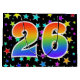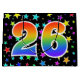 This exciting, fun, and vibrant gift bag design features a colourful star field inspired pattern, along with the number "26" having a multicolored rainbow spectrum like gradient pattern, on a black coloured background. A gift bag like this might be a fun, happy way of wrapping gifts or presents being given for somebody’s twenty sixth birthday, or perhaps for a couple’s twenty sixth wedding anniversary, or some other 26th event. [~Z0000347]