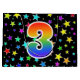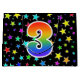 This exciting, fun, and vibrant gift bag design features a colourful star field inspired pattern, along with the number "3" having a multicolored rainbow spectrum like gradient pattern, on a black coloured background. A gift bag like this might be a fun, happy way of wrapping gifts or presents being given for somebody’s third birthday, or perhaps for a couple’s third wedding anniversary, or some other 3rd event. [~Z0000347]