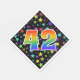 This exciting, fun, and vibrant paper napkin design features a colourful stars pattern, along with the number "42" having a multicolored rainbow inspired spectrum gradient pattern, on a black coloured background. Paper napkins like this might be fun to use at a party commemorating somebody’s forty second birthday, or perhaps a couple’s forty second wedding anniversary, or some other 42nd event. [~Z0000346]