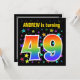 This fun, vibrant, and exciting birthday party invitation design features a colourful stars shapes pattern, along with the number "49" featuring a multicolored rainbow inspired spectrum or gradient pattern. The name on the front can be personalised. The back features personalised details about the party. Birthday party invitations like this might be sent to invite guests to a birthday party being held to celebrate somebody’s forty ninth birthday. [~Z0000349]