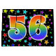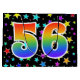 This exciting, fun, and vibrant gift bag design features a colourful star shapes pattern, along with the number "56" featuring a multicolored rainbow spectrum like gradient pattern, on a black coloured background. A gift bag like this could perhaps be a fun and happy way of wrapping gifts or presents being given for somebody’s fifty sixth birthday, or perhaps for a couple’s fifty sixth wedding anniversary, or some other 56th event. [~Z0000347]