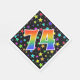 This exciting, fun, and vibrant paper napkin design features numerous colourful star shapes, along with the number "74" featuring a multicolored rainbow inspired spectrum gradient pattern, on a black coloured background. Paper napkins like this might be fun to use at a party in honour of somebody’s seventy fourth birthday, or perhaps a couple’s seventy fourth wedding anniversary, or some other 74th event. [~Z0000346]