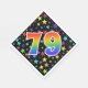 This exciting, fun, and vibrant paper napkin design features numerous colourful star shapes, along with the number "79" featuring a multicolored rainbow inspired spectrum gradient pattern, on a black coloured background. Paper napkins like this might be fun to use at a party being held in honour of somebody’s seventy ninth birthday, or perhaps a couple’s seventy ninth wedding anniversary, or some other 79th event. [~Z0000346]