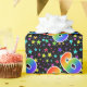 This exciting, fun, and vibrant wrapping paper design features a colourful star field pattern, along with the number "86" having a multicolored rainbow spectrum like gradient pattern, on a black coloured background. Wrapping paper like this might be a fun way to wrap presents or gifts being given for somebody’s eighty sixth birthday, or perhaps for a couple’s eighty sixth wedding anniversary, or some other 86th event. [~Z0000345]