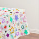 multi-coloured design blends solid and outlined star shapes in a playful, chaotic harmony of red, purple, blue, gold, and teal on a White background