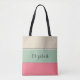 This striped and trendy design in pink-red, beige, green, and black can be personalised with your name. The black name template is set in a hand written script font. It's a stylish design that could be used for for school books, shopping, the beach, or your baby's supplies.