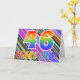 The front of this exciting, fun, and eye-catching birthday greeting card design features a pattern of colourful stripes, along with the message "46 years old!" featuring a multicolored rainbow like gradient pattern. The inside features a customised greeting message, or could perhaps be cleared and left blank if a message is to be written by hand instead. A greeting card like this could be a fun, happy way of sending a message to somebody who is celebrating their forty sixth birthday. [~Z0000351]