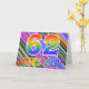 The front of this eye-catching, vibrant, and exciting birthday greeting card design features a colourful stripes pattern, along with the message "62 years old!" having a multicolored rainbow like gradient pattern. The inside features a customised greeting message, or could perhaps be cleared and left blank if a message is to be written by hand instead. A greeting card like this could be a fun, happy way of sending a greeting message to somebody who is celebrating their sixty second birthday. [~Z0000351]