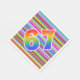 This fun, vibrant, and eye-catching paper napkin design features a multicolored stripes pattern, along with the number "67" having a multicolored rainbow inspired gradient pattern. Paper napkins like these might be fun to use at a celebration being held to commemorate somebody’s sixty seventh birthday, or perhaps a couple’s sixty seventh wedding anniversary, or some other 67th event. [~Z0000352]