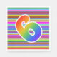 This eye-catching, vibrant, and exciting paper napkin design features a striped pattern with many colours, along with the number "6" featuring a multicolored rainbow inspired gradient pattern. Paper napkins like these might be fun to use at a party being held to honour somebody’s sixth birthday, or perhaps a couple’s sixth wedding anniversary, or some other 6th event. [~Z0000352]