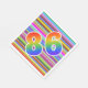 This eye-catching, exciting, and vibrant paper napkin design features a multicolored striped pattern, along with the number "86" having a multicolored rainbow inspired gradient pattern. Paper napkins like these might be fun to use at a celebration being held to commemorate somebody’s eighty sixth birthday, or perhaps a couple’s eighty sixth wedding anniversary, or some other 86th event. [~Z0000352]
