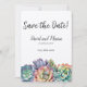 Set the tone for your upcoming wedding with this beautifully designed succulent-themed Save the Date. Featuring a soft, watercolor arrangement of succulents and greenery, this card blends rustic charm with modern elegance—perfect for desert, boho, or garden-inspired celebrations.