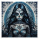 A Colourful Sugar Skull lady done in blues, ornate background.