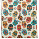 A colourful collection of sugar skulls in a seamless pattern. Turquoise, orange black and white colours used in this design.