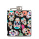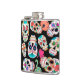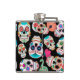 Bright images of sugar skulls make a colourful pattern on this unique and fun flask. There are ten different skull images, all individual in various colours, and placed on a dramatic black background. There's even a snake!
