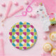 Colourful, stylish SUMMER Paper Plates with cerise pink, banana yellow, cyan blue and lime green quadrants in a geometric pattern. This vibrant, simple design is an ideal addition to your summer tableware. Matching items available.