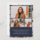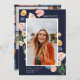 Colourful bright summer floral and greenery arrangements, graduation announcement and invitation. Card features, navy blue background colours, single front framed photo with 3 additional photo spaces on back.