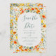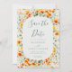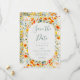 This design features bright watercolor florals in vibrant shades of yellow, orange, green, and teal. Perfect for spring and summer weddings.