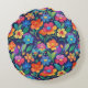 Colourful Summer Garden Floral Seamless Pattern Round Cushion