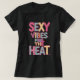 A vibrant and fun graphic design with the text Sexy Vibes Feel The Heat in bold, colourful, outlined letters.