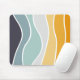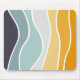 Abstract retro style summery illustration of colourful (yellow, blue, orange, navy blue, mustard, turquoise) waves decoration on white background