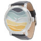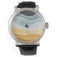 Abstract retro style summery illustration of colourful (yellow, blue, orange, navy blue, mustard, turquoise) waves decoration on white background