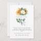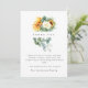 Funeral, bereavement thank you card. Family name and thanks on the back. Typography. Sunflower & Peony floral spray. Message.
